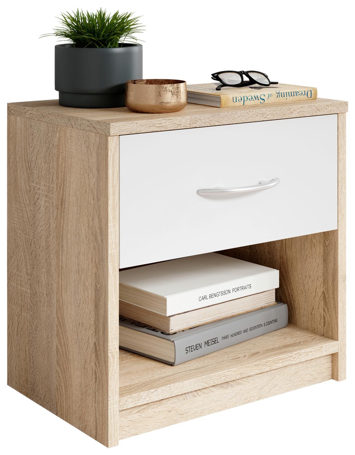Noční stolek FAIR dekor sub Sonoma/bílá - bílá/černá, Konvenční, kompozitní dřevo/plast (39/41/28cm) - Based