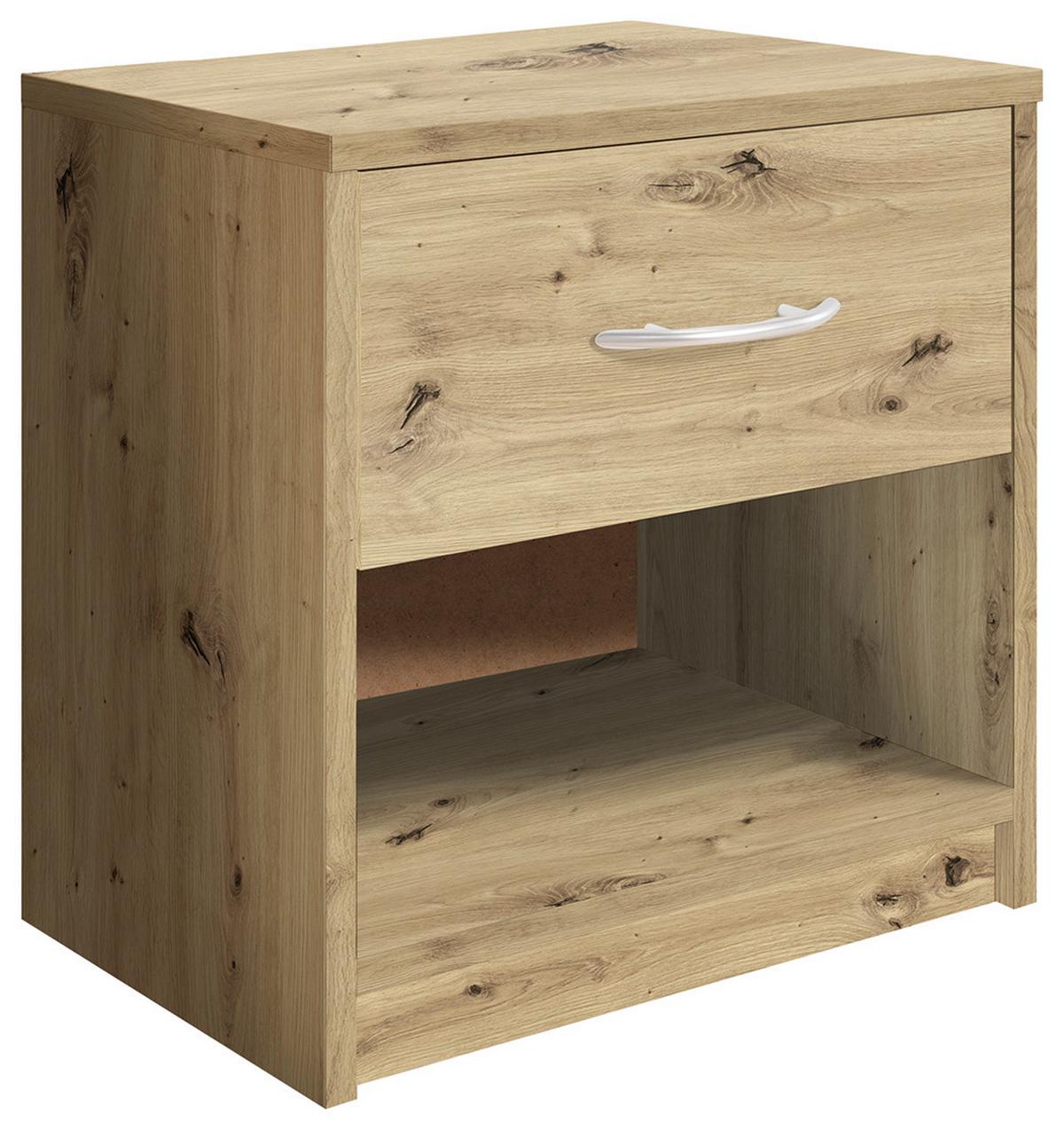 Noční stolek FAIR dekro dub Artisan - černá/barvy stříbra, Konvenční, kompozitní dřevo/plast (39/41/28cm) - Based