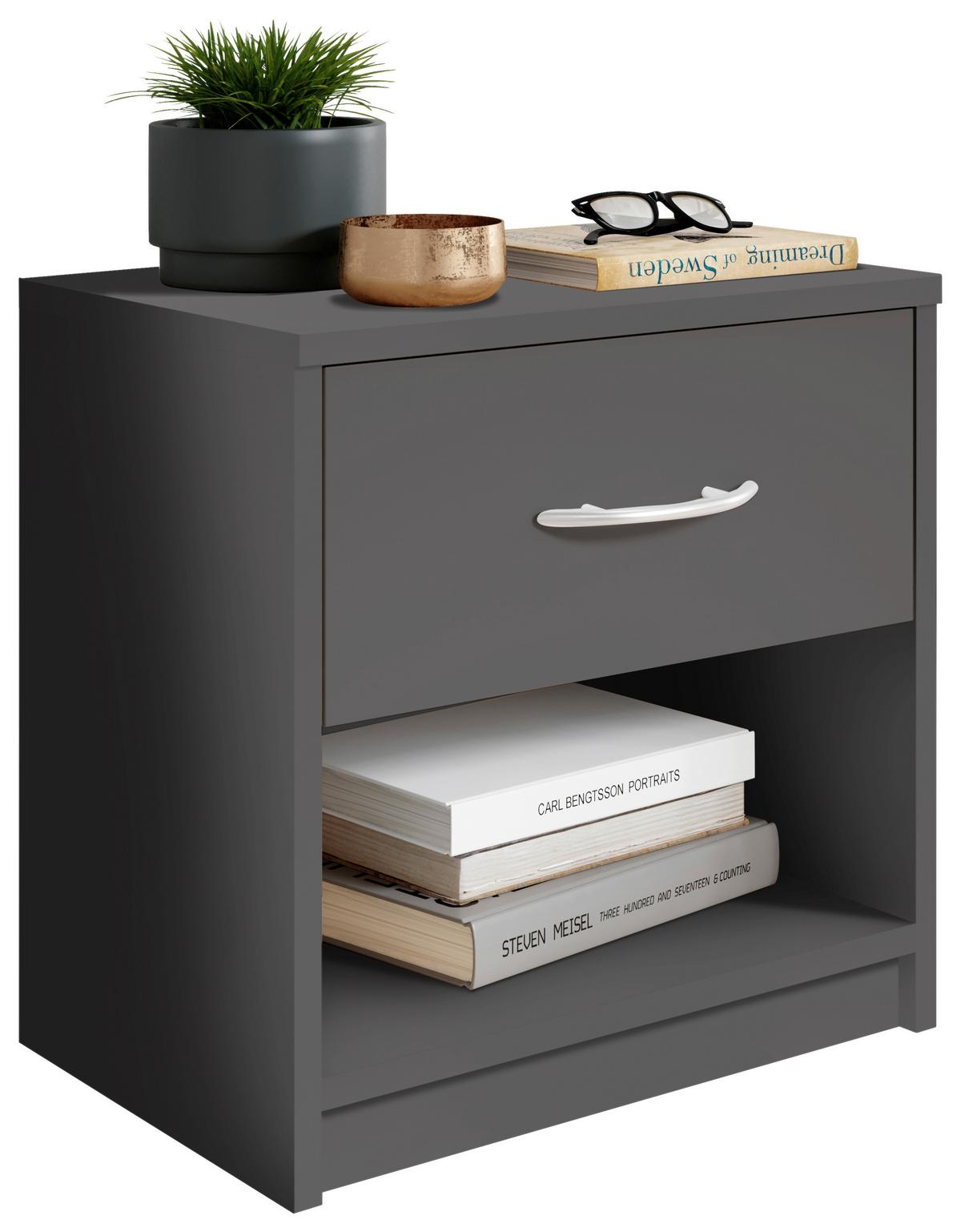 Noční stolek FAIR grafitová - černá/barvy stříbra, Konvenční, kompozitní dřevo/plast (39/41/28cm) - Based