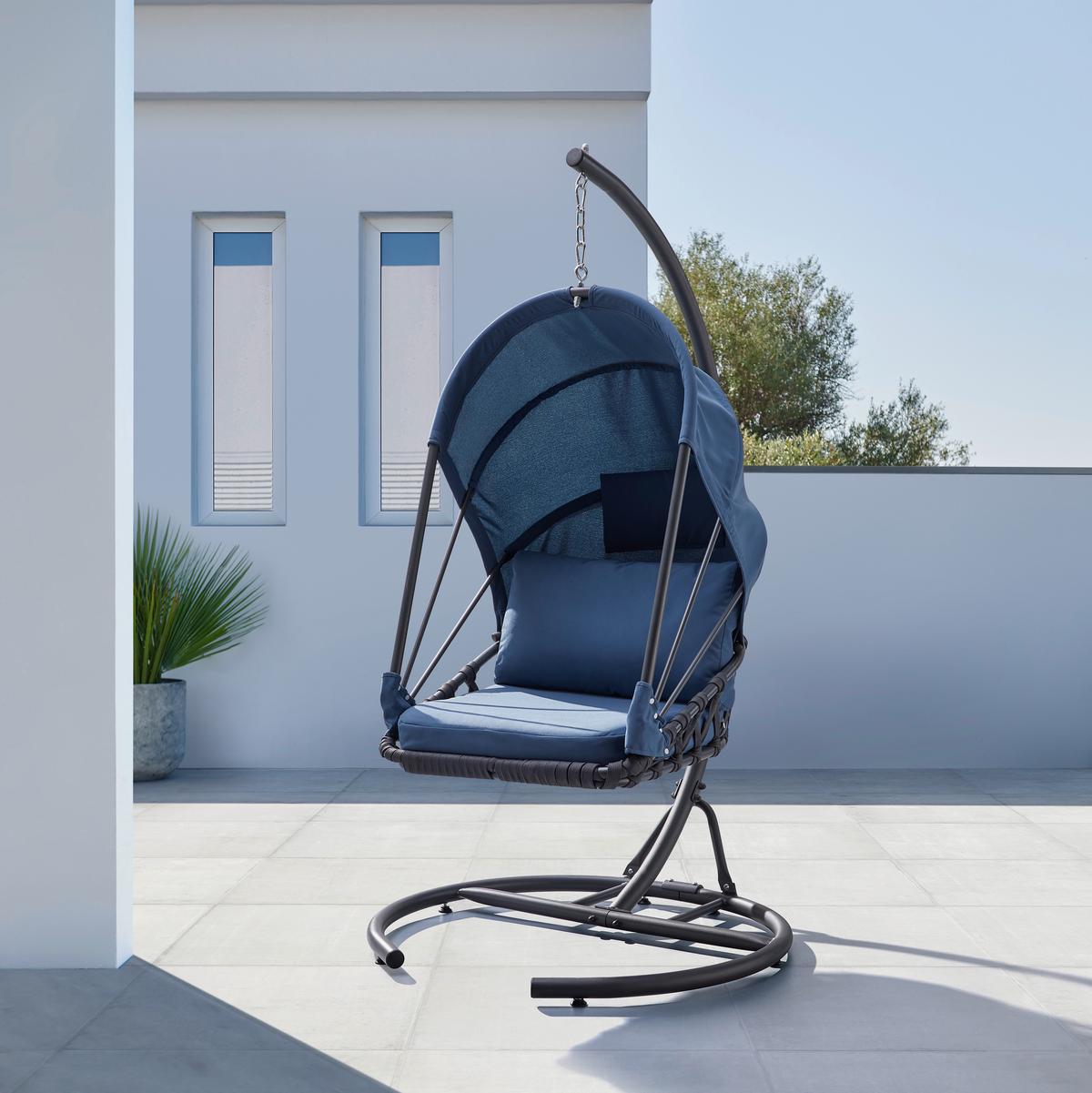 Závěsné křeslo ILVA BLU v modré a šedé barvě - ideální místo pro relax!