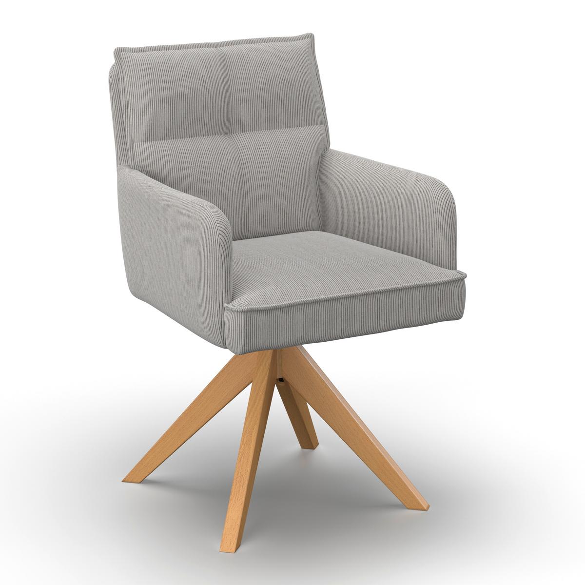 Židle s područkami FELINA - světle šedá/přírodní barvy, Moderní, kov/dřevo (57/94/64cm) - Bessagi Home