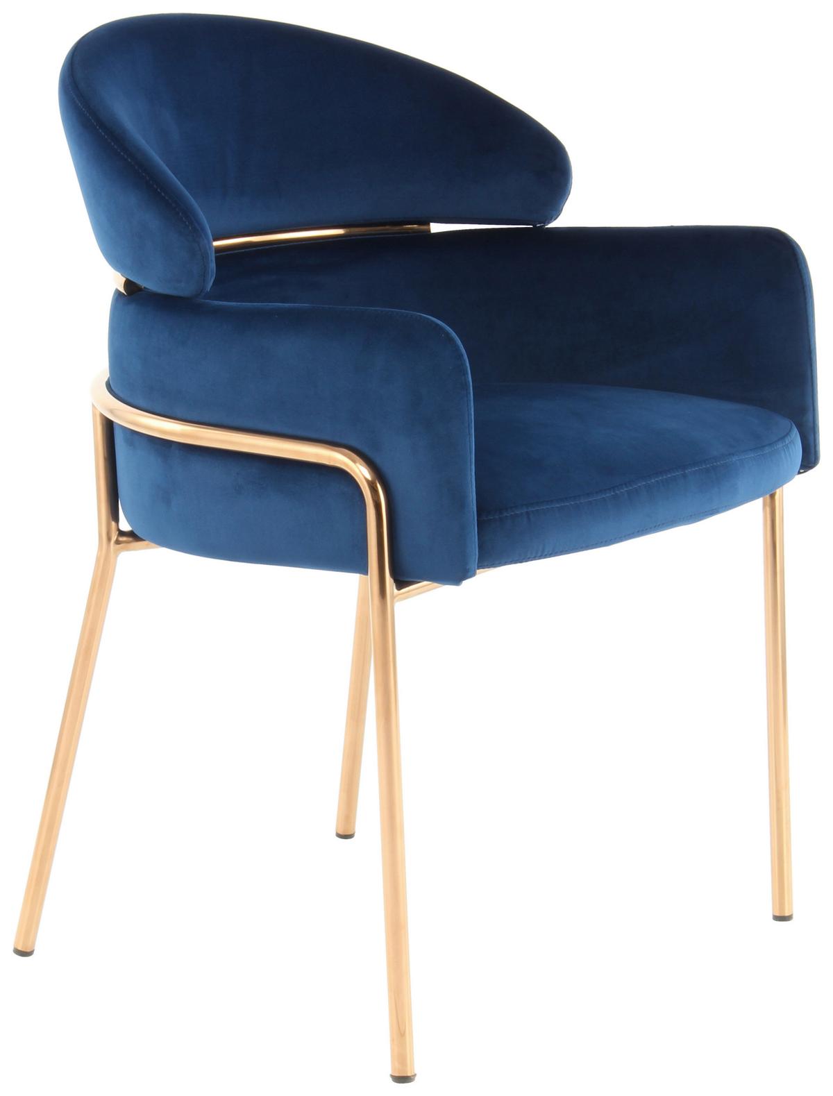 Židle s područkami modrá/barva růžového zlata - barva růžového zlata/modrá, Moderní, kov/textil (58/79/57cm) - MID.YOU