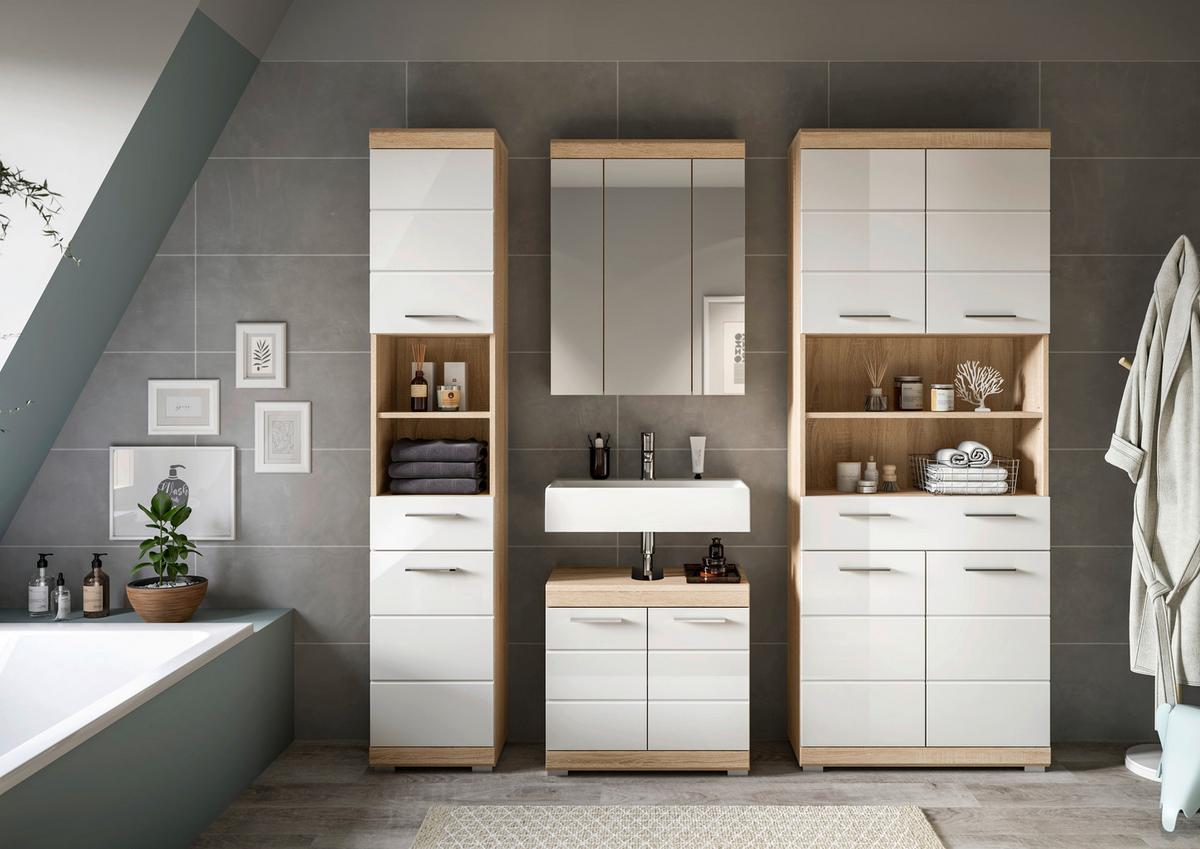 Kouepelna Lambada, 4-dílná, bílá/dub - barvy stříbra/Sonoma dub, Moderní, kompozitní dřevo/plast - MID.YOU