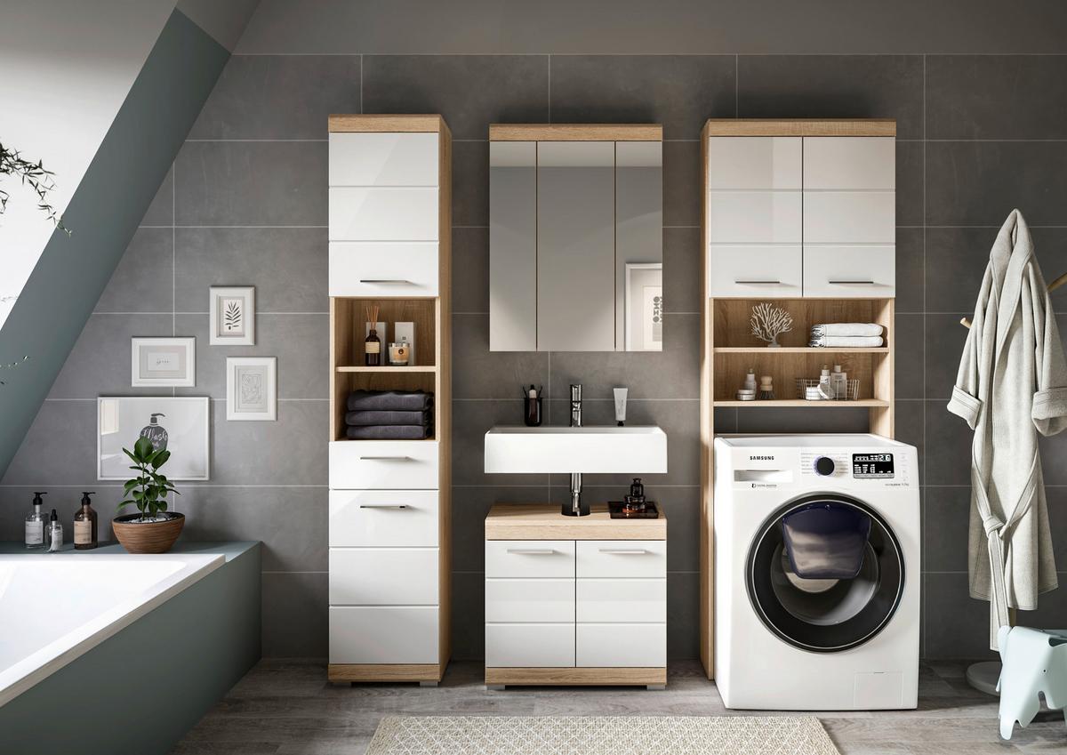 Koupelna Lambada, 4-dílná, bílá/dub - barvy stříbra/Sonoma dub, Moderní, kompozitní dřevo/plast (160,2cm) - MID.YOU