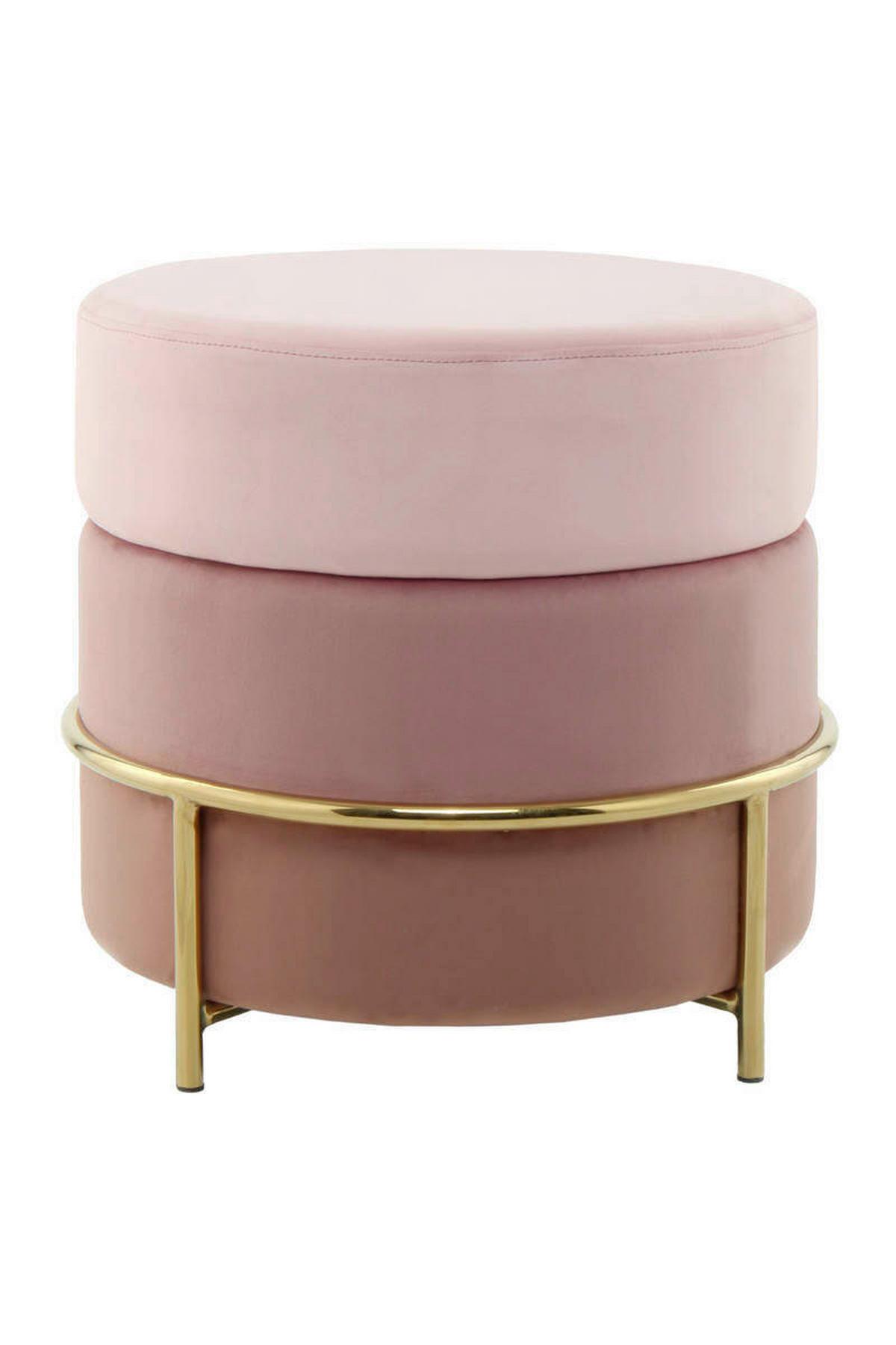 Kulatý taburet PINK, růžová / zlatá barva - růžová/barvy zlata, Basics, kov/kompozitní dřevo (48,5/46/48,5cm)