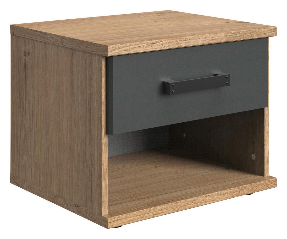 Noční stolek LIVERPOOL šířka 46cm - barvy dubu/barvy grafitu, Design, kompozitní dřevo (46/38/40cm) - MID.YOU