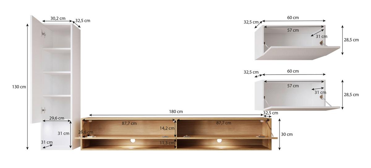 bílá, vysoce lesklá bílášířka/výška/hloubka: 270/130/32,5 cm