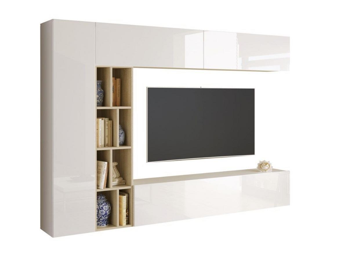 Obývací stěna BRANDY - Sonoma dub/vysoce lesklá bílá, Moderní, kompozitní dřevo (224/160/35cm) - Ti'me