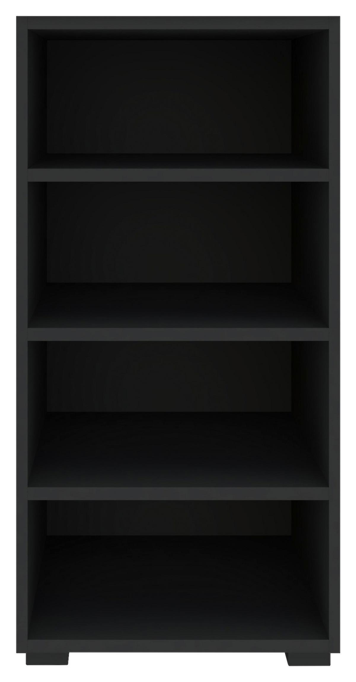 Tento profesionální úložný prostor o rozměrech cca 45,6 x 89,6 x 40 cm (Š x V x H) je vyroben z dřevodekoru, s povrchy v antracitovém provedení. Čtyři otevřené přihrádky jsou tvořeny třemi nastavitelnými policemi o tloušťce cca 16 mm. V nich najdou své místo knihy, časopisy a mnoho dalšího. Na vrchní ploše může být prezentováno dekorativní světlo nebo fotografie vašich blízkých.