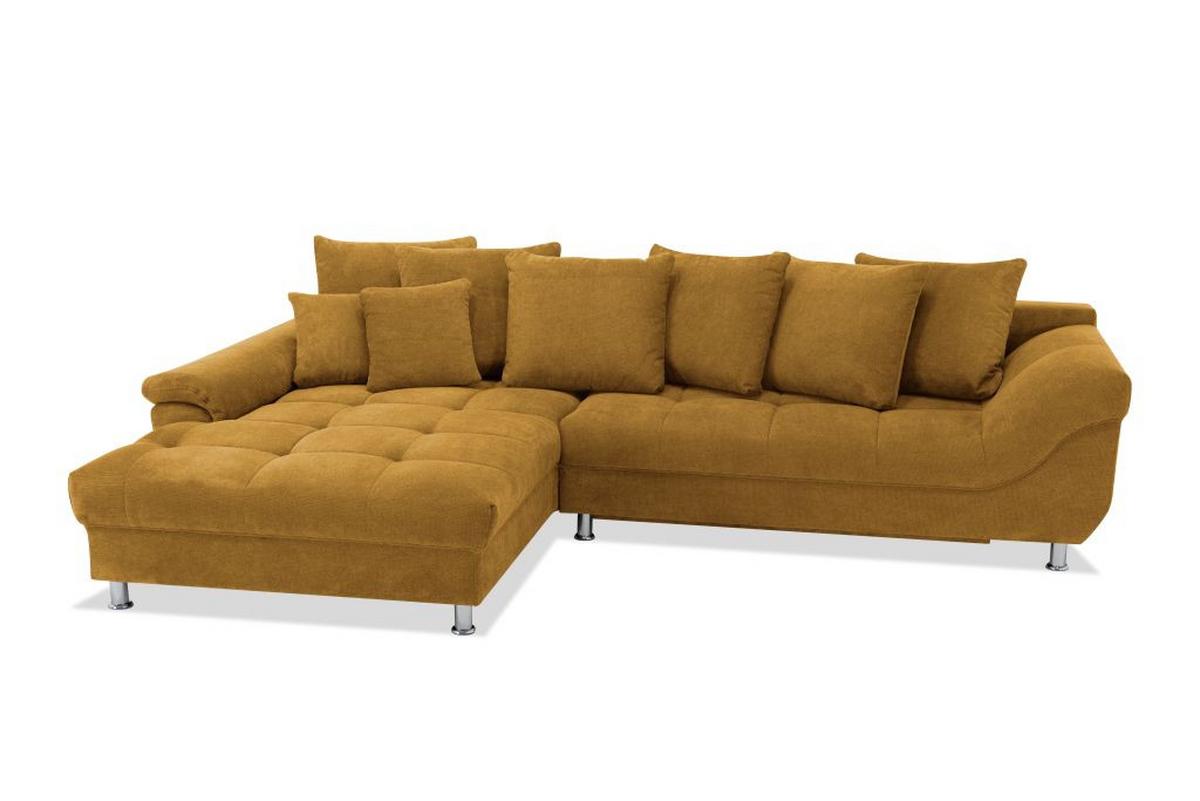 Rohová sedačka ERICE, levá, tmavě žlutá - tmavě žlutá/barvy chromu, Design, textil/plast (198/312cm)