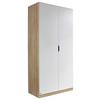 Ať už jde o ložnici, pokoj pro mládež nebo pokoj pro hosty - tato velká šatní skříň s rozměry přibližně 91 x 197 x 54 cm (Š x V x H) vytváří prostor pro celé šatstvo. Na 1 tyči na šaty se šířkou asi 90 cm pohodlně zavěsíte bundy, šaty nebo obleky. 1 police odolá nákladu až 10 kg a mohou se na ně přehledně umístit trička, kalhotynebo svetry. Za dvěma středními dveřmi jsou další dvě úložné místa sšířkou přibližně 45 cm. Úchytky jsou vyřezány přímo ve dveřích. Stímto moderním šatníkem optimálně využijete svůj obytný prostor!