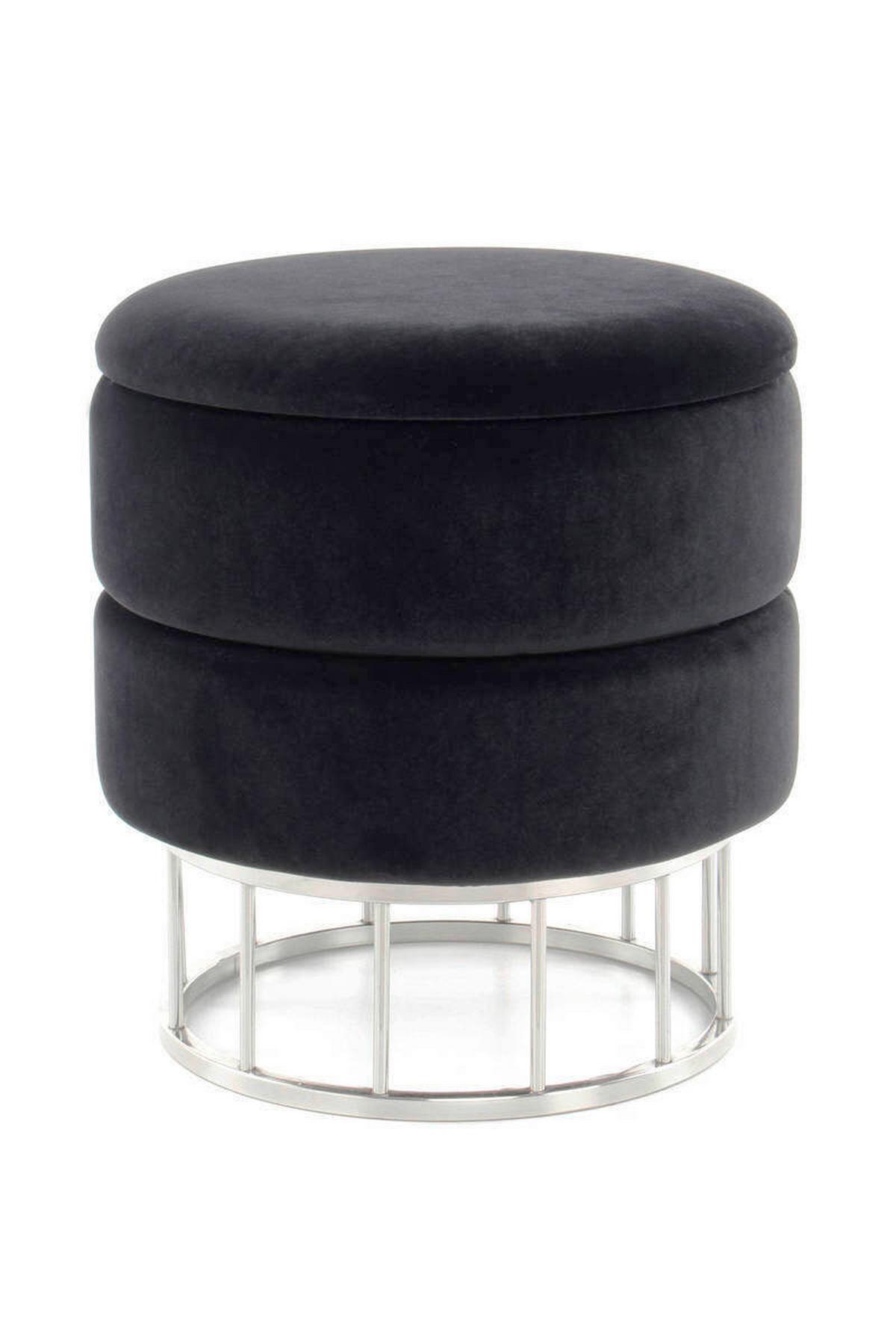 Taburet černá/stříbrná - černá/barvy stříbra, Basics, kov/kompozitní dřevo (37,5cm)