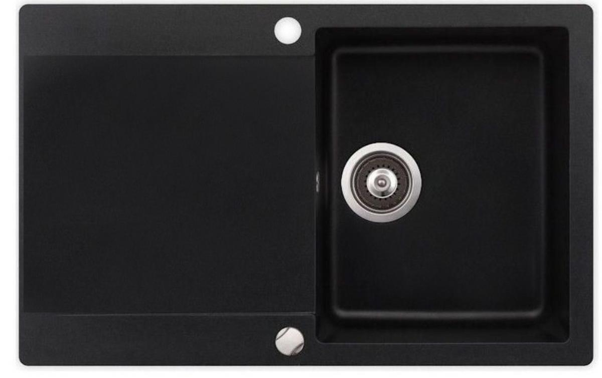 Granitový dřez, barva Nero, oboustranný, pro montáž na pracovní desku, včetně excentrického ovládání, vhodný do skříňky šířky od 45 cm. Včetně sifonu = odtoková armatura + zápachový uzávěr s odbočkou pro myčku. Rozměr dřezu: 78 / 49,5 cm, hloubka vaničky: 19 cm.Tegranitový materiál dřezu Vám mimo jiné zaručuje vysokou odolnost vůči poškrábání, vysokým teplotám i usazování nečistot. Ošetřovat jej můžete i běžnými čistícími prostředky.