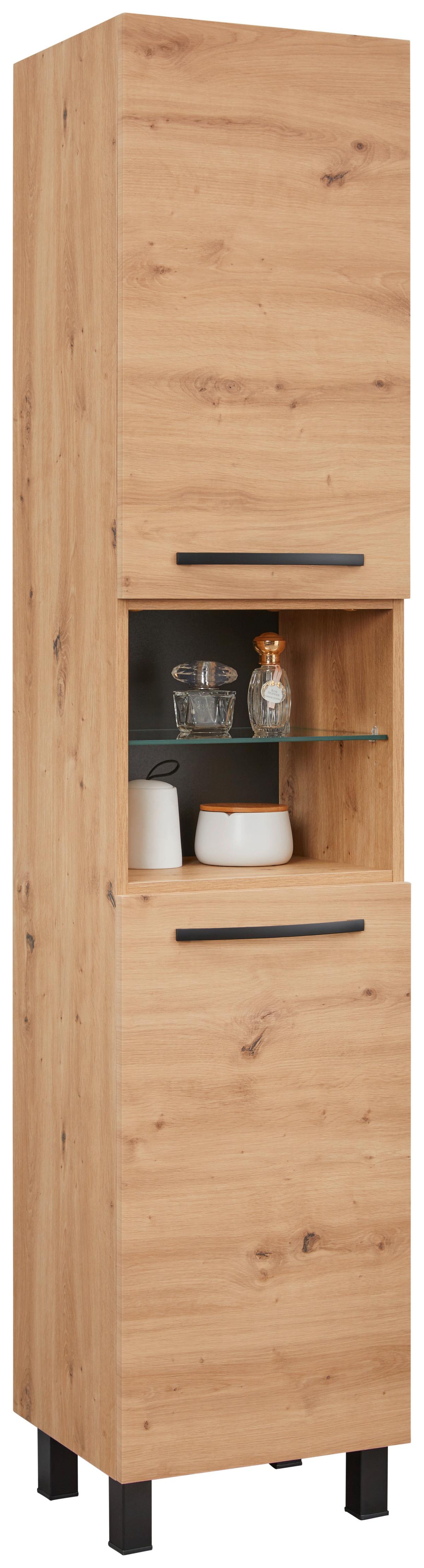 Vysoká skříň FLORENZ -EXKLUSIV- - černá/dub artisan, Moderní, kov/kompozitní dřevo (40/180/190/35cm) - Mömax