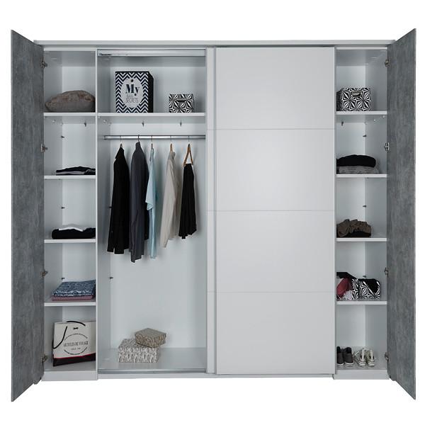 Šatní skříň LEMBO - bílá/barvy stříbra, Konvenční, kompozitní dřevo/plast (206/195/60cm)